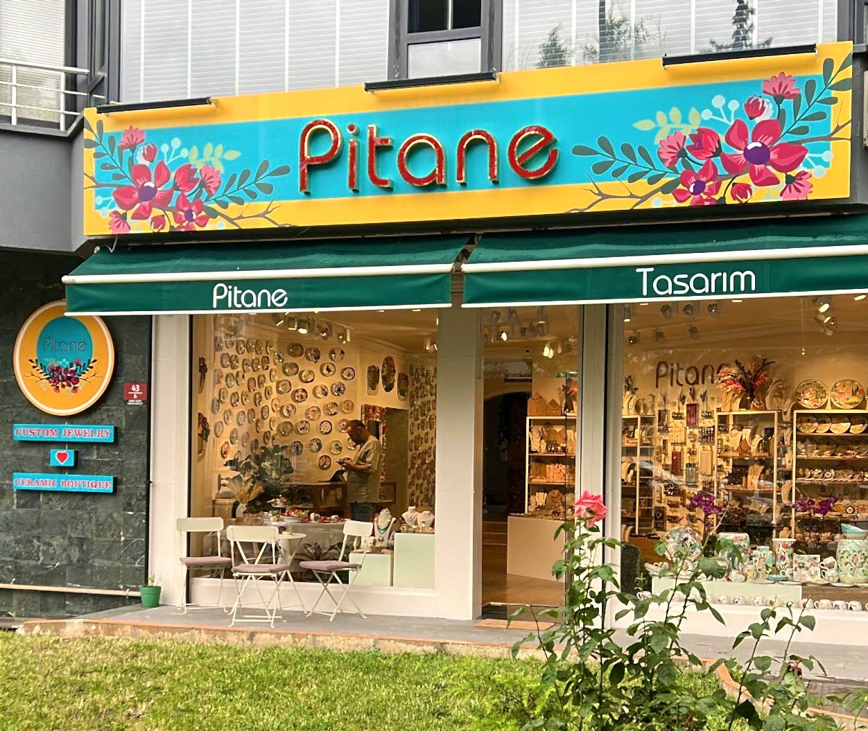 Pitane adındaki bir Amazon kraliçesinin kurduğu rivayet edilen İzmir' in Çandarlı ilçesinin antik adı olmasının yanısıra "bilici kadınlar ülkesi", "sonsuz tane" ve "suyu bol" anlamlarına da gelmektedir. Pitane, bu toprakların saklı hikayelerinin gücünden aldığı ilhamla masalsı bir merak ve coşkuyla Karaköy' de seramik ve takı alanında el yapımı eşsiz ürünleri hayata kazandıran butik bir işletme olarak kuruldu. Mayıs 2025 tarihinde İstanbul' daki mağazasını taşıyarak Ankara' nın Cinnah Caddesi' ne yerleşti. Artık yolculuğuna başkentte devam ediyor.